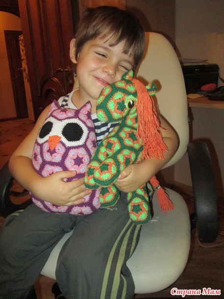 я тоже скоро свое мучение покажу- уже близится конец- осталось глазки. но мне не нравятся все мои глазки в коллекции для лошадки- не знаю как сделать такие глазки чтоб нравились я тут не причем мои вязаные улыбаюсь